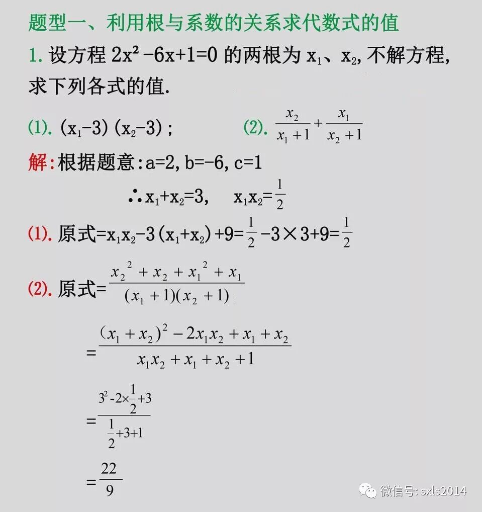 初三数学上 一元二次方程根与系数的关系 数学老师 微信公众号文章阅读 Wemp